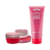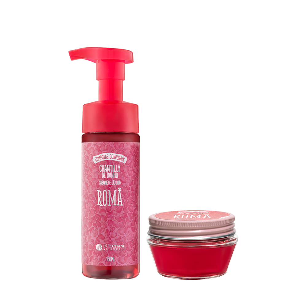 Esta composição contém Gelatina de Banho Sabonete Corporal Romã 55g e Chantilly de Banho Sabonete Líquido Romã 175ml. Transforme o banho em um momento lúdico e sensorial. O sabonete em gelatina limpa suavemente com sua espumação leve, deixando a pele perfumada com a envolvente fragrância de Romã. Já o sabonete líquido com textura de chantilly oferece uma limpeza cremosa e um toque macio à pele. Diversão, cuidado e perfume em cada textura.